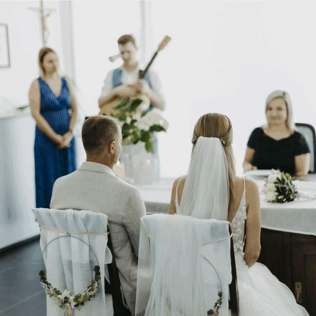 Live-Musik zur Trauung, beim Sektempfang und Warm-up bis 22 Uhr – inklusive live begleitetem Hochzeitstanz